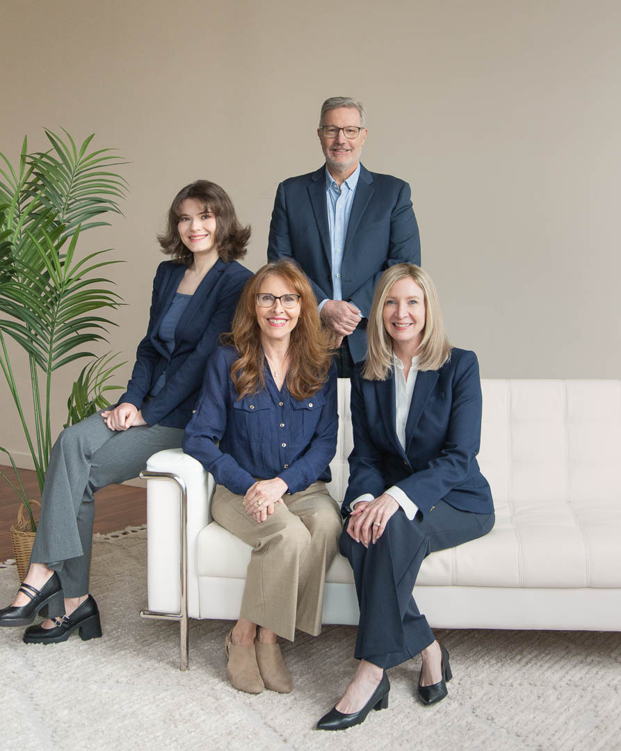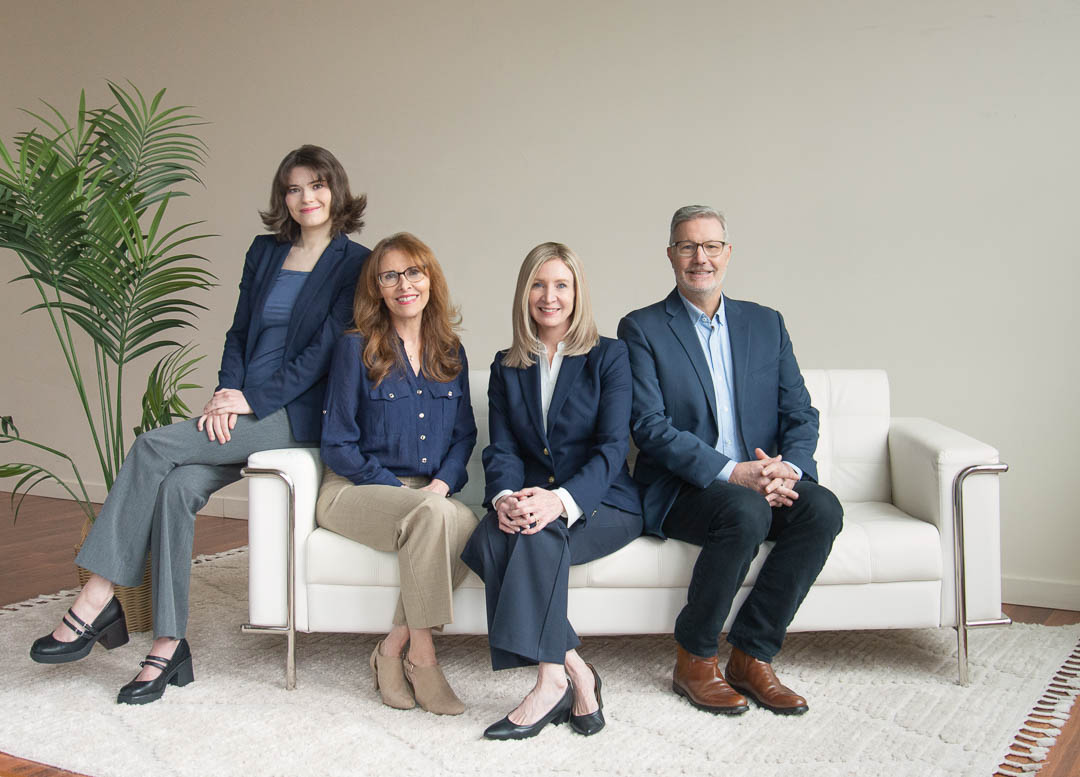 New professional headshots and group photo for estate planning and business attorneys of Res Nova Law. Photographed by our head photographer Erica, using our signature natural light technique as the light source.